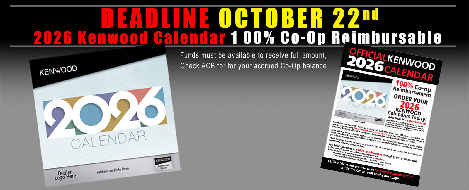 ALERT: During the end of each Co-Op period order production is extended because of the large flow of orders that are received at the end of the period.
