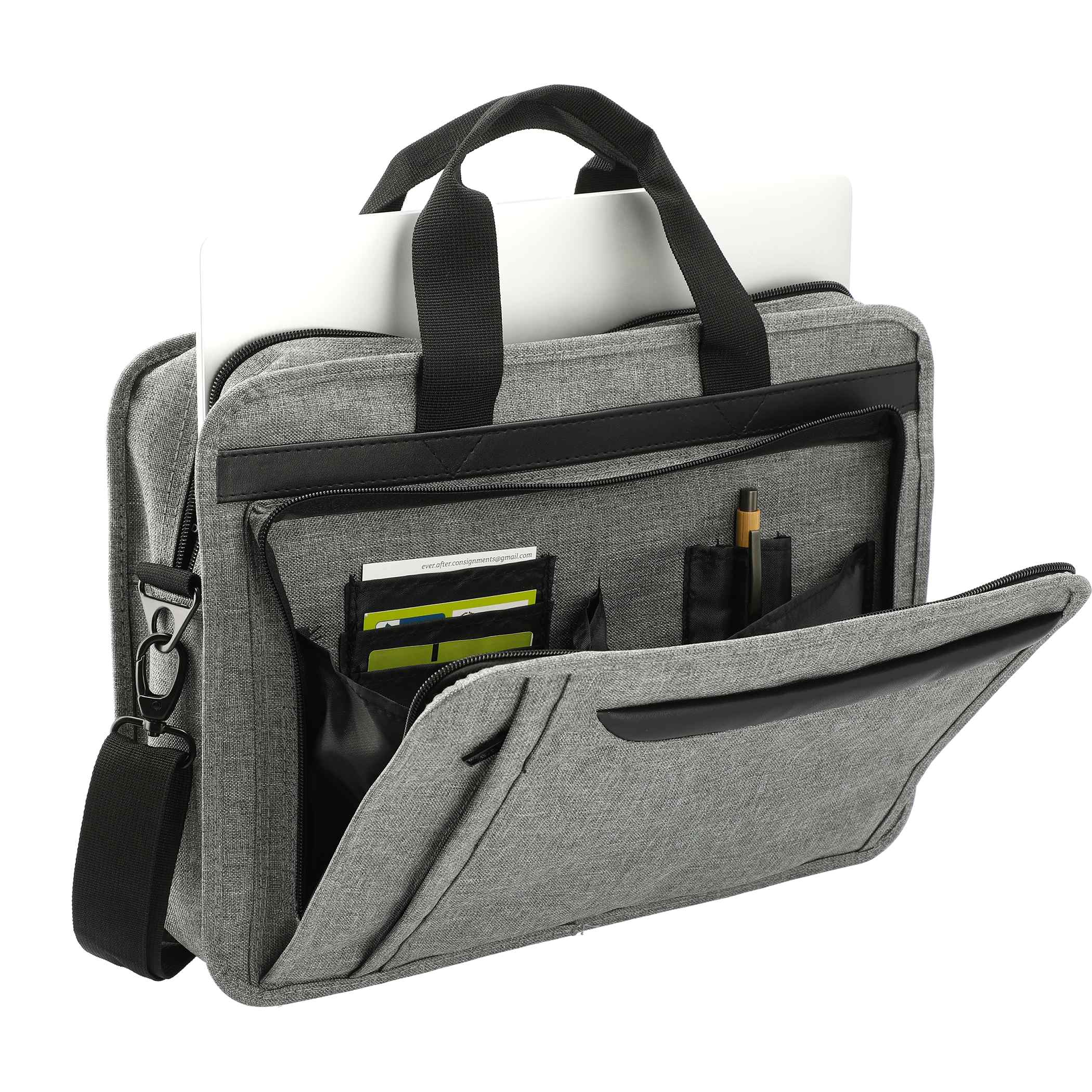 Use the Paragon 15" Computer Briefcase to organize, carry, and store daily essentials. It features a padded computer compartment that fits most laptops up to 15", plus a full front organizer and file dividers for documents or small accessories. This PolyCanvas briefcase has a removable, adjustable shoulder strap for easy handling and transportation.