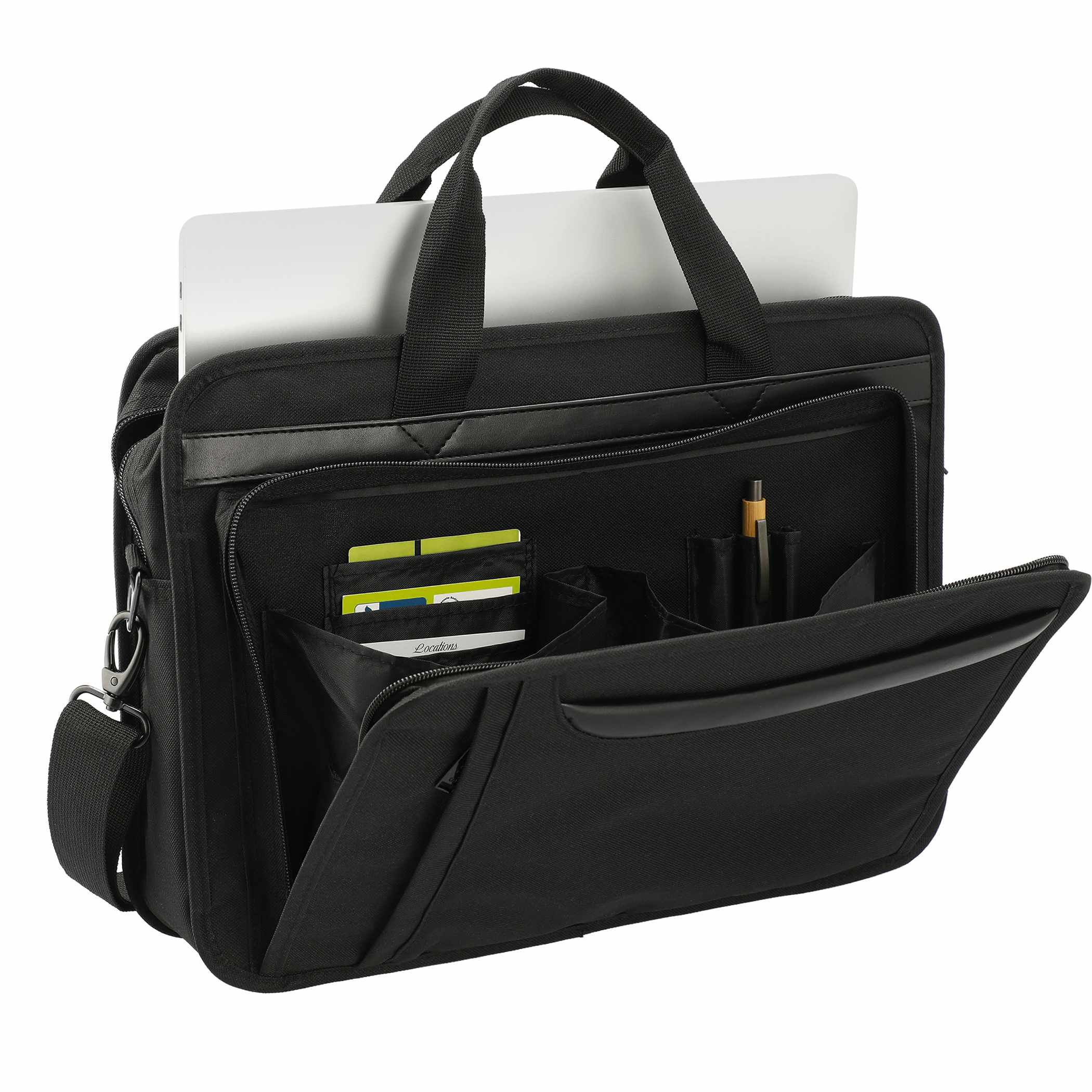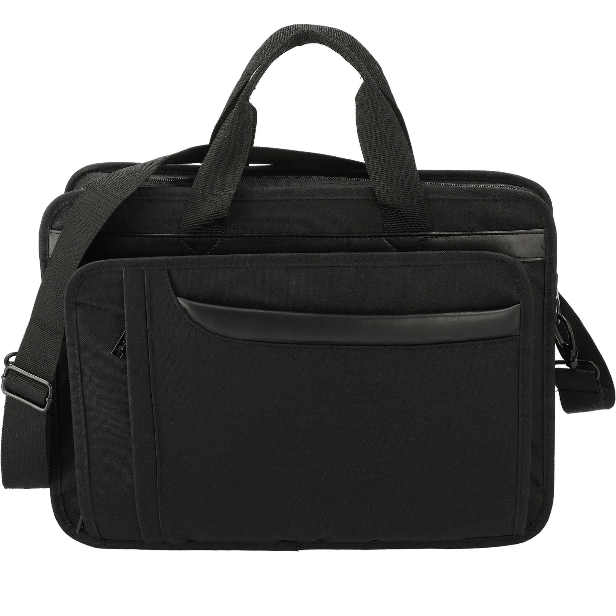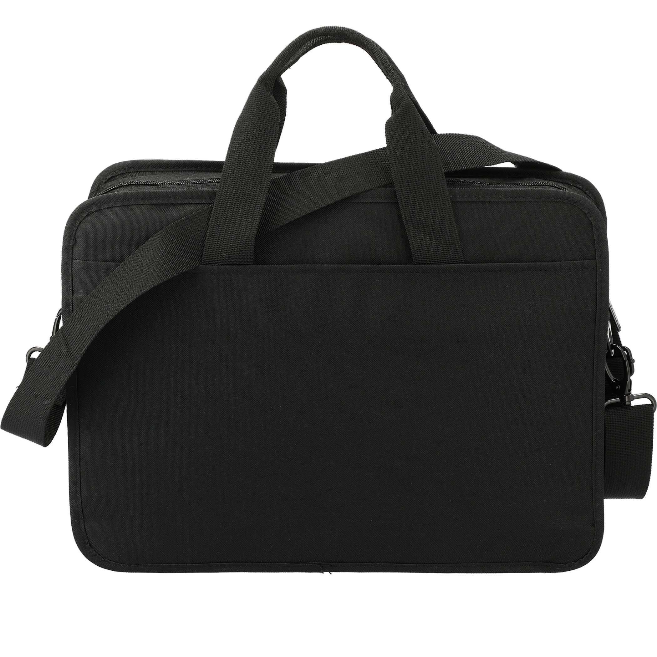 Use the Paragon 15" Computer Briefcase to organize, carry, and store daily essentials. It features a padded computer compartment that fits most laptops up to 15", plus a full front organizer and file dividers for documents or small accessories. This PolyCanvas briefcase has a removable, adjustable shoulder strap for easy handling and transportation.